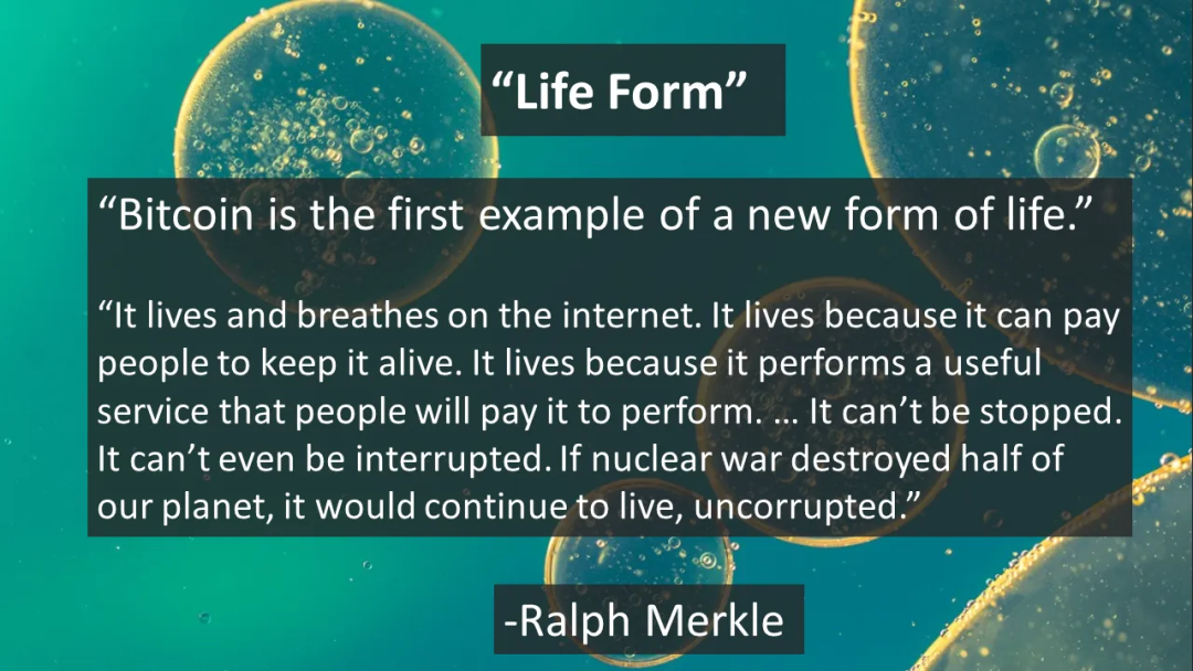 在这个思路下,RalphMerkle称区块链是互联网上的新生命形式。