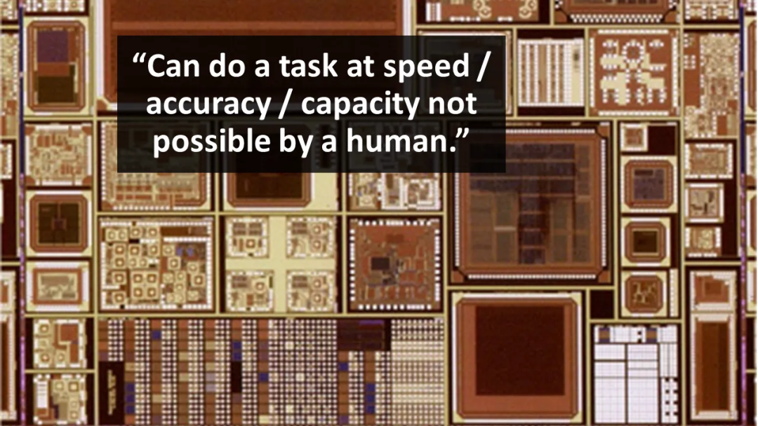 以下是一个例子。现代芯片可能拥有100亿个晶体管,由一支20人的团队在短短几个月内设计完成。这归功于人类设计师使用的计算机辅助设计工具背后的AI技术。[McConaghy等人,2012]