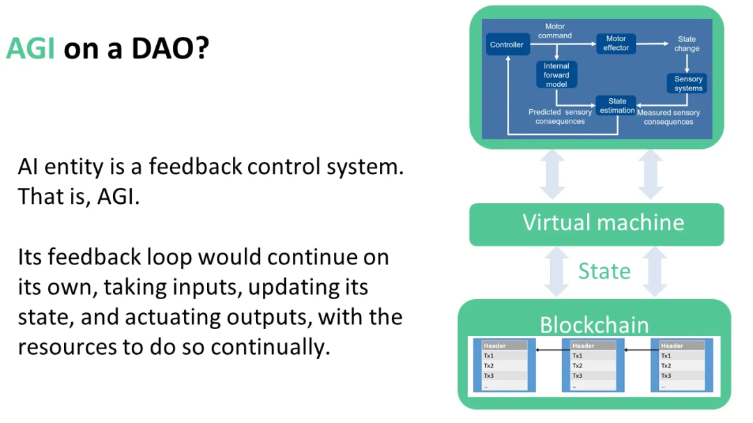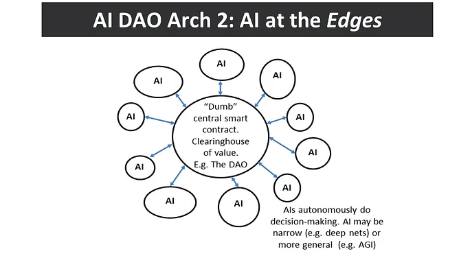 前面的两个部分分别介绍了区块链和AI的概念。我们可以将它们结合起来,形成一个叫做AIDAOs的概念:即AI、去中心化自治组织。