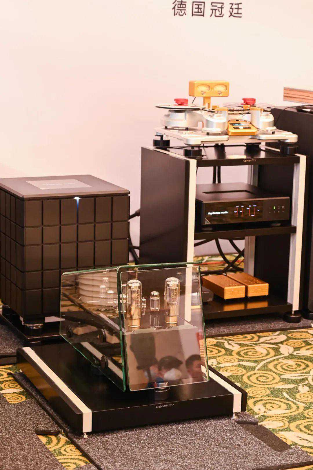 新一代的TubePreampV全平衡胆石混合前级与MONOⅥ单声道后级功放更是具有令人惊喜的鲜活音质和动态表现。后级线路采用20枚超高品质MOS-FET场效应输出晶体管,组成全平衡功率放大线路,提供1500瓦(4Ω)、950瓦(8Ω)的强劲输出功率,搭配德国GauderAkustik高德声学DARC200落地箱演示,具有高水准的声音表现力,可谓是非常靓声的房间之一。