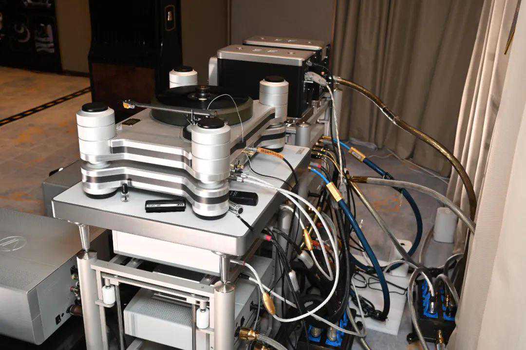 与这套大丹旗舰前后级搭配的是丹麦锐都音箱,音源则用到了德国盘煌JRTransrotor的RondinoFMD唱盘,机架与线材分别是德国创新MidiReference机架与美国超时空线材,这套在东方宾馆五楼行政酒廊演示的系统外观精致得令人不忍移开目光,声音也是非常精致非常有音乐感染力的。当然,价格也是非常“吸引人”的,因为真的很贵,定价达到了人民币800万!