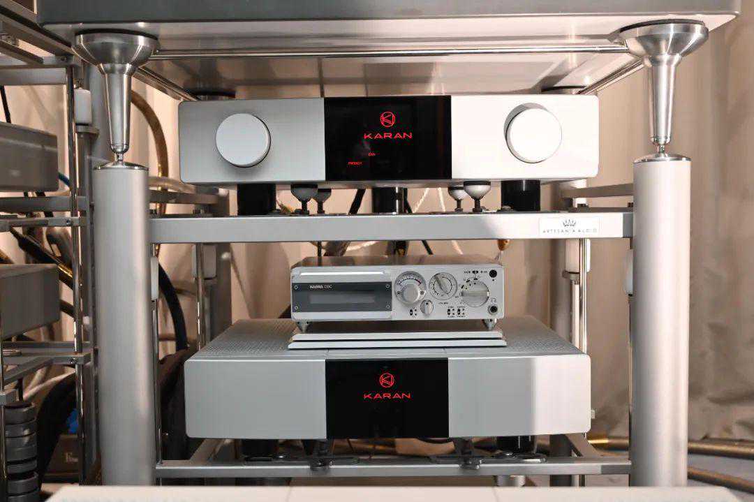 值得一提的凌智(威傲)引进的塞尔维亚KARANAcoustics(佳龙),百万级前后级貌似也是首次在大型音响展上亮相,这套每声道输出功率达到2000瓦的前后级驱动荷兰KHARMA卡玛百万级3.0版中哑铃。KARANAcoustics(佳龙),是一个无论技术或者用料、做工都相当独特的品牌,能有幸亲耳欣赏旗舰级前后级真是有耳福的。