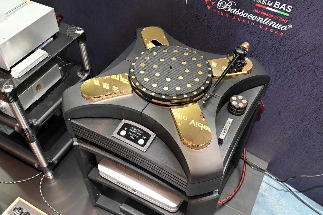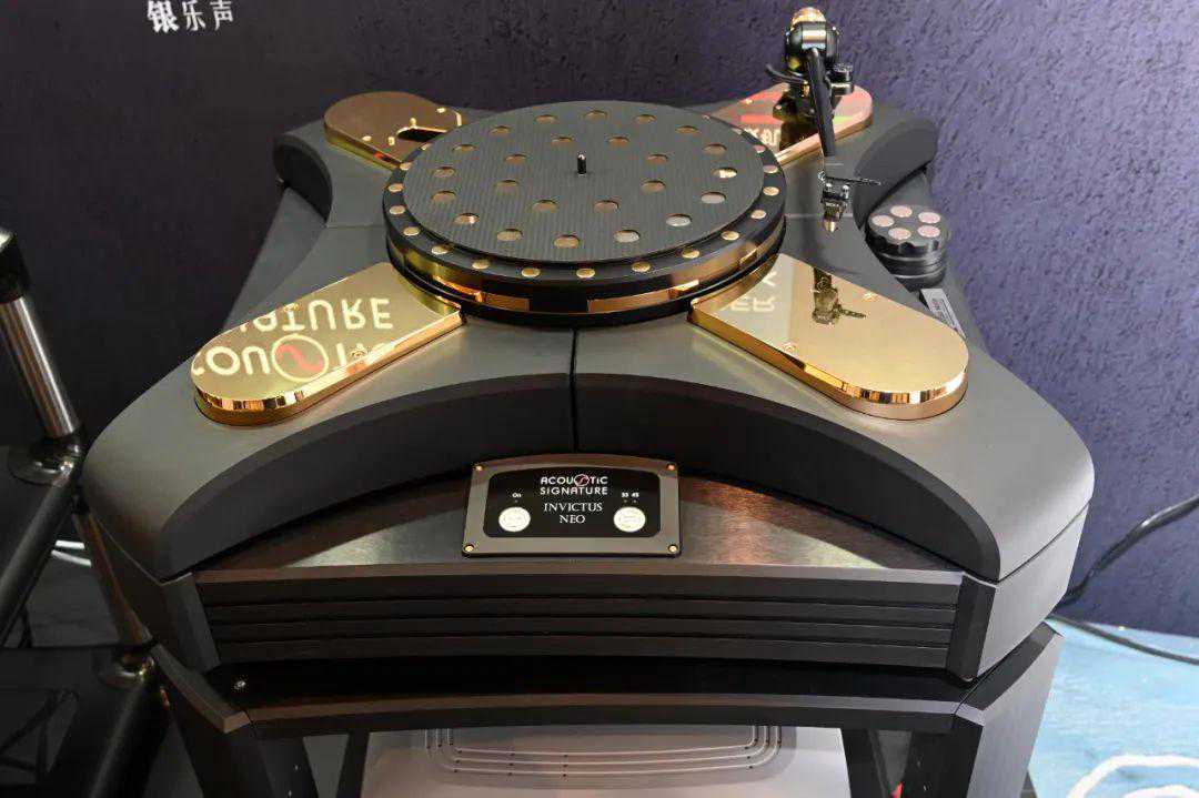 此套组合使用的德国AcousitcSignature铭著InvictusNeo凯旋黑胶唱盘为厂方的旗舰型号,连上专用避震底座、唱臂唱头价值180万元。采用多项最新专利技术打造,包括内置6个完全隔离的AC马达、结合创新的AVC-System三级抗震控制供电系统、DTD钻石涂层超精密轴承系统、独有56个Silencer消音器的转盘,彻底杜绝任何谐振的影响。