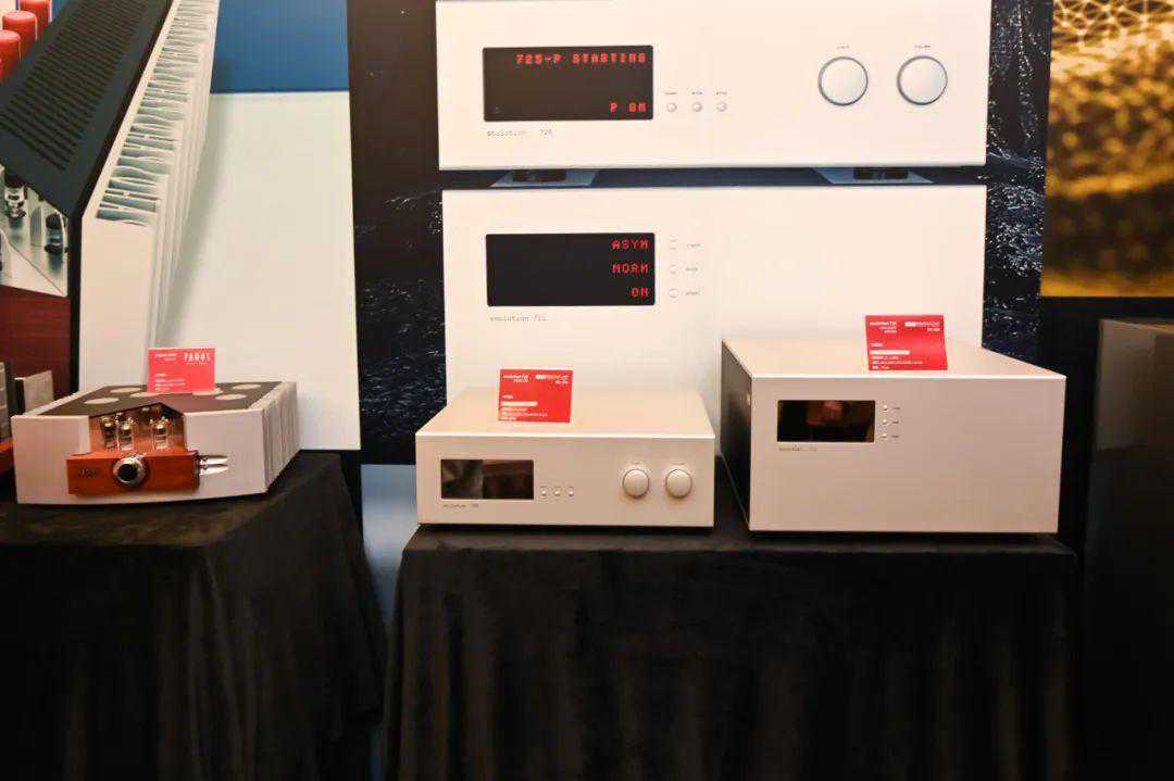 骏韵音响在东方宾馆一楼会议室4室展厅展示代理品牌的最新产品,包括美国YG、瑞士Soulution(登峰)、意大利AudiaFlight(歌匠)、意大利Pathos(百宝仕)、加拿大Kronos(克诺斯)以及最近很火的新品牌法国RevivalAudio(法宝)等产品。