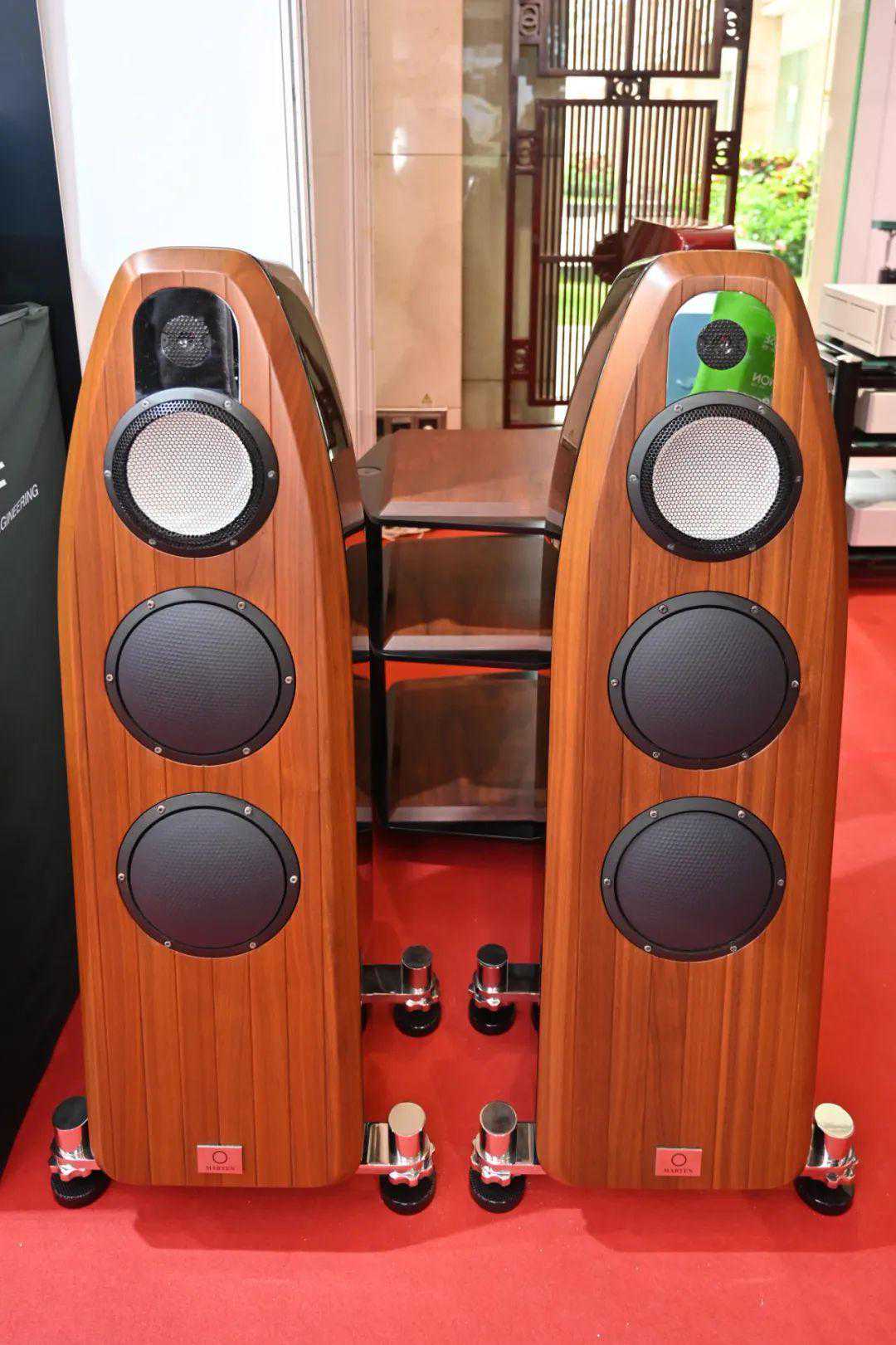 虽然只是做静态展示,但丰宁/臻品位于东方宾馆二号楼金色大厅A\B厅A厅前厅A展位陈列的器材可以说是非常豪横的。比如重达230公斤、高度2米的马田Marten新款旗舰ColtraneSupreme2,应该可以算是音响史上最贵的音箱之一,也可以说是本次音响展最贵的音箱之一了。