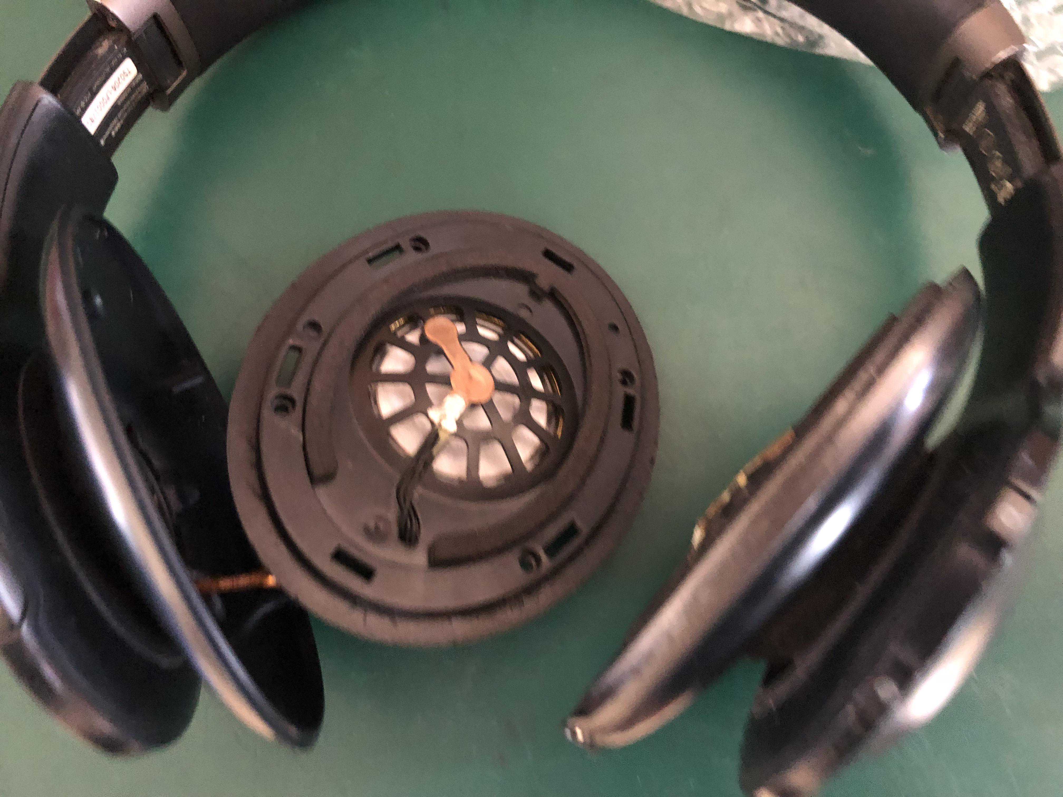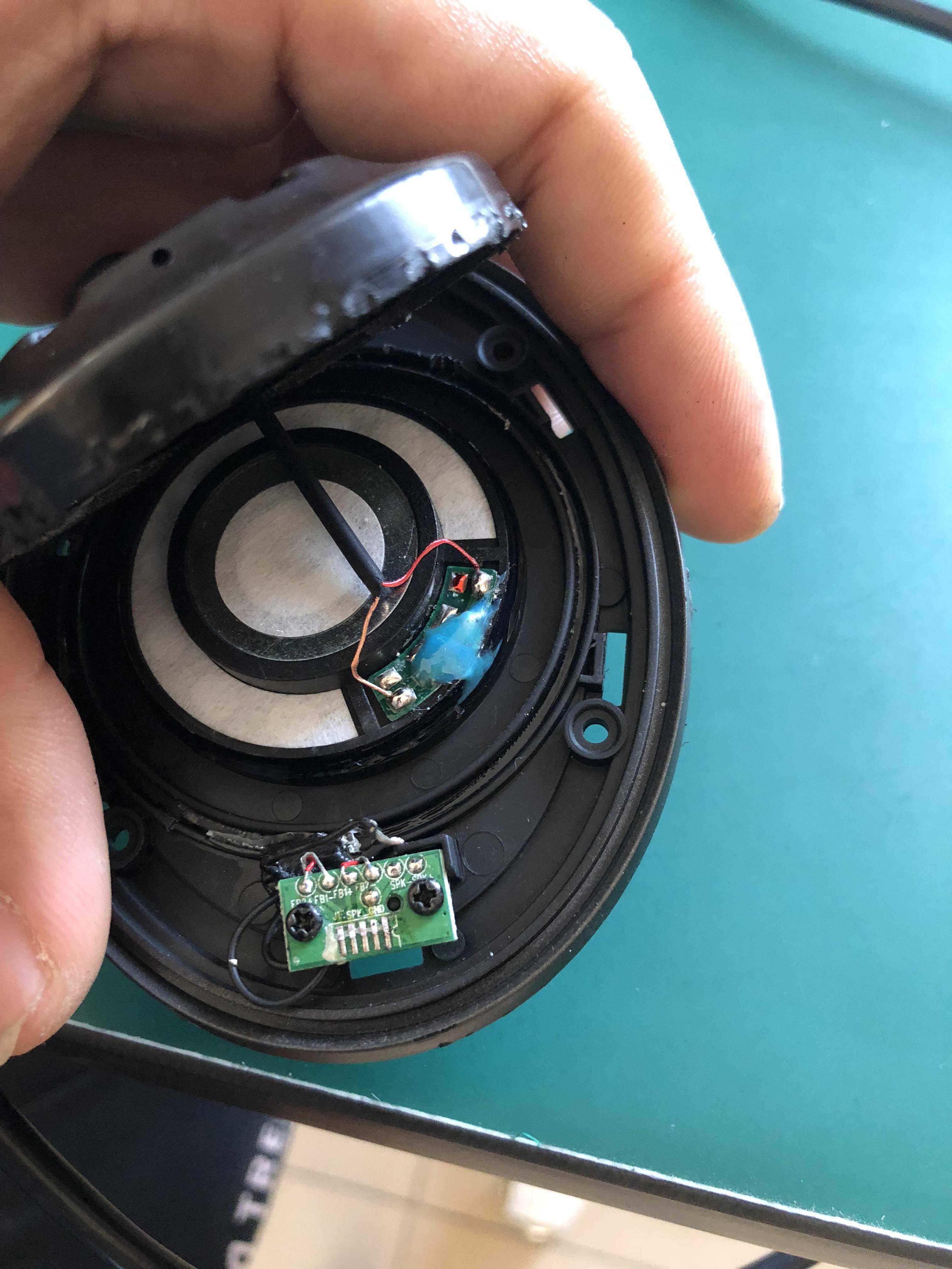 手头这台,听着听着,一边无声了,以为是接触不良,可是怎么带着蹦跶都没有反应,想想这种耳机,带蓝牙和降噪电路,不知道会不会电路故障,于是就拆开先测试喇叭看看