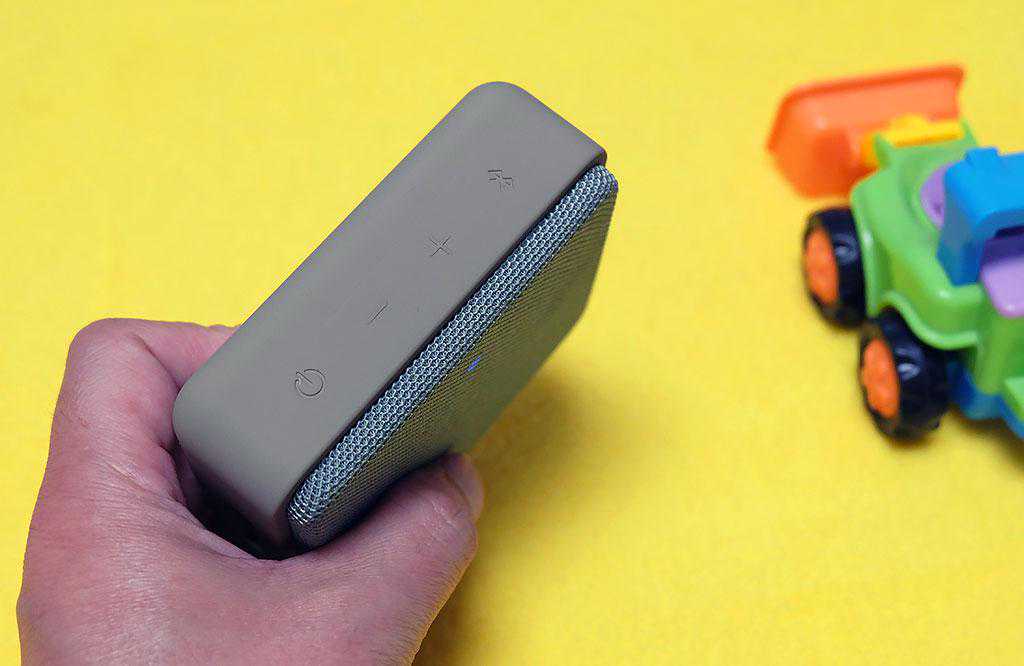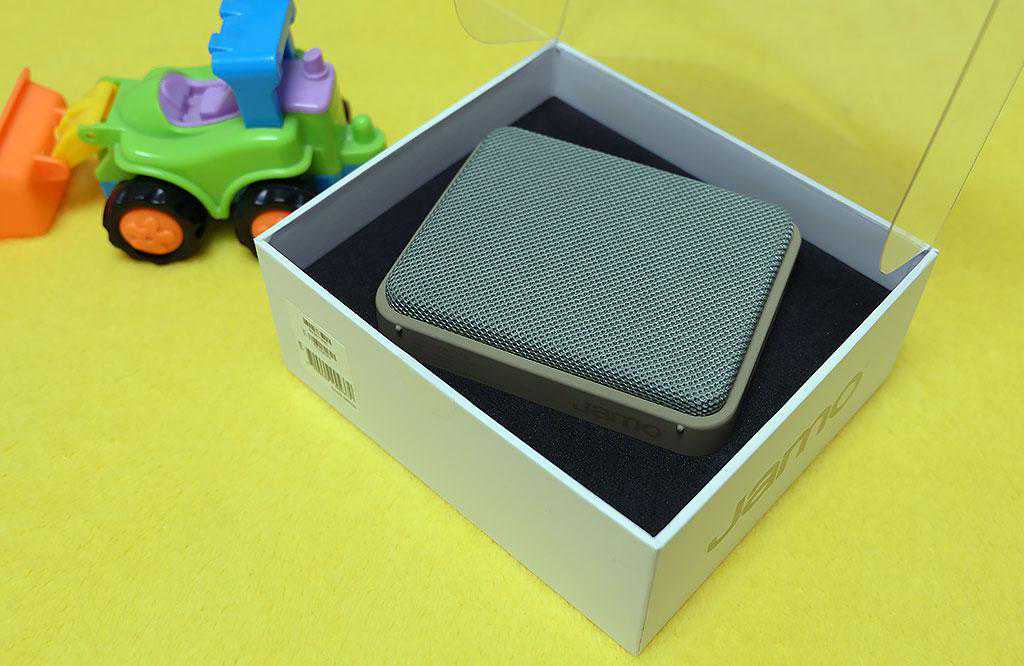 这款音箱体积方便并不大,单手可拿握,长98mm,宽80mm,高35mm,重量也不重,单个重量约250g,在便携性方面还是优势明显的。