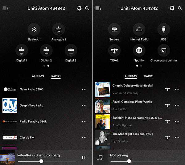 强大的网络功能,一方面支持UPnP,可以读取网域内的文件,二方面通过连接网际网络(支持有线连接或WiFi,且WiFi同时支持2.4G和5G网络,若要传输音乐文件,我个人建议选择5G通道,干扰较少,传输会更顺畅),可享受更丰富的串流服务,包括免费的网络电台,以及收费的Spotify和Tidal。这些都已经内建在Naim自家的App里面,只要在App里登录这些串流服务的使用者资讯即可连线。并且,UnitiAtom也支持无线传输,包括AirPlay和Chromcast,若有其他蓝牙的播放装置,UnitiAtom也支持蓝牙,且有aptXHD,可进行高音质的蓝牙传输。值得一提的,分享一个让我又惊又喜的经验,当我以AirPlay播放YouTube的音乐节目时,UnitiAtom的萤幕会显示出刊头画面,就像我以UPnP播放文件时萤幕会显示专辑封面一样。真是太友善了!