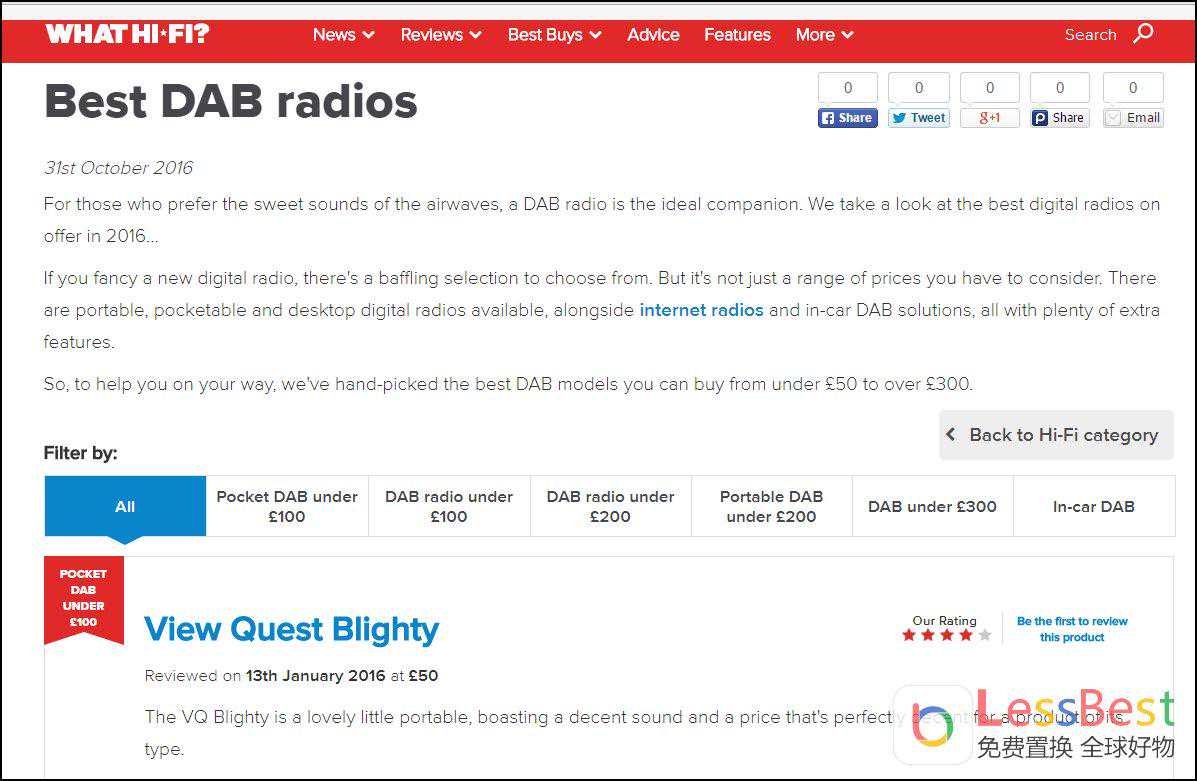 英国著名的hifi杂志whathifi最近选出了各价格区间最好的数字电台收音机,总共有六款产品上榜。