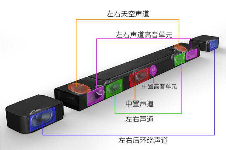 JBLBAR800真无线影霸支持5.1.2声道杜比全景声,它由一个中置声道、一个中置高音单元、两个左右+两个左前右前声道、两个左右前高音单元、两个前天空声道和两个可拆卸的两个后天空声道+左右声道高音单元和两个左右后环绕声道组成,能够带来强悍的3D环绕声体验,下面我们看看实用效果吧。
