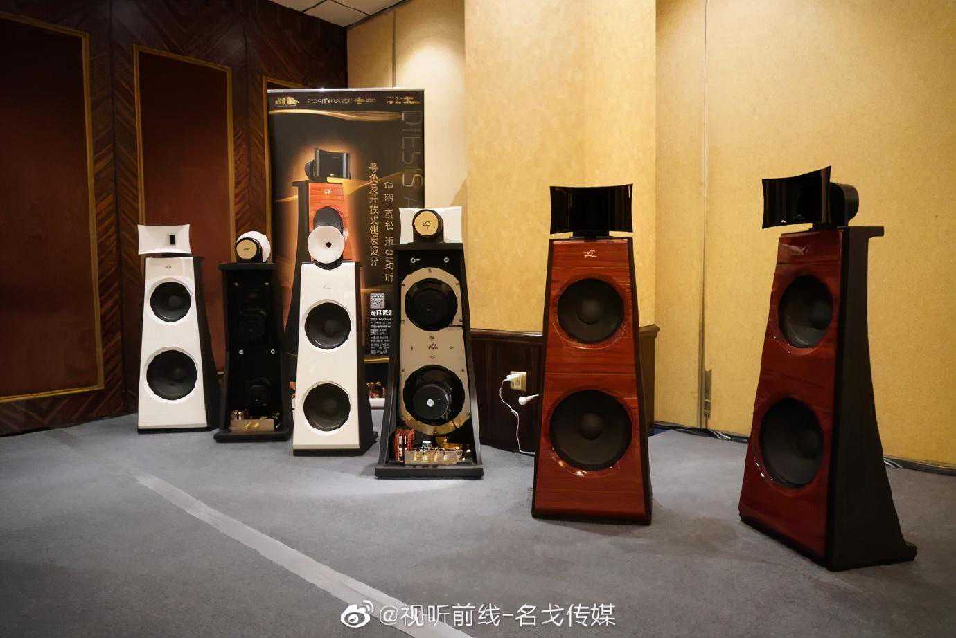 DiesisAudioRoma天使音箱也是第一次在国内展示,其独特偶极开放式的中低音结构,解决号角系统难以与环境匹配的问题,喇叭系统所有材质均以复合方式混合构成;超豪华分频器用上多个不同形式的巨形电感及金银电容,顶级型号更用上银音圈及银牛,为广大烧友带来新一代号角,吹响极致发烧集结号。