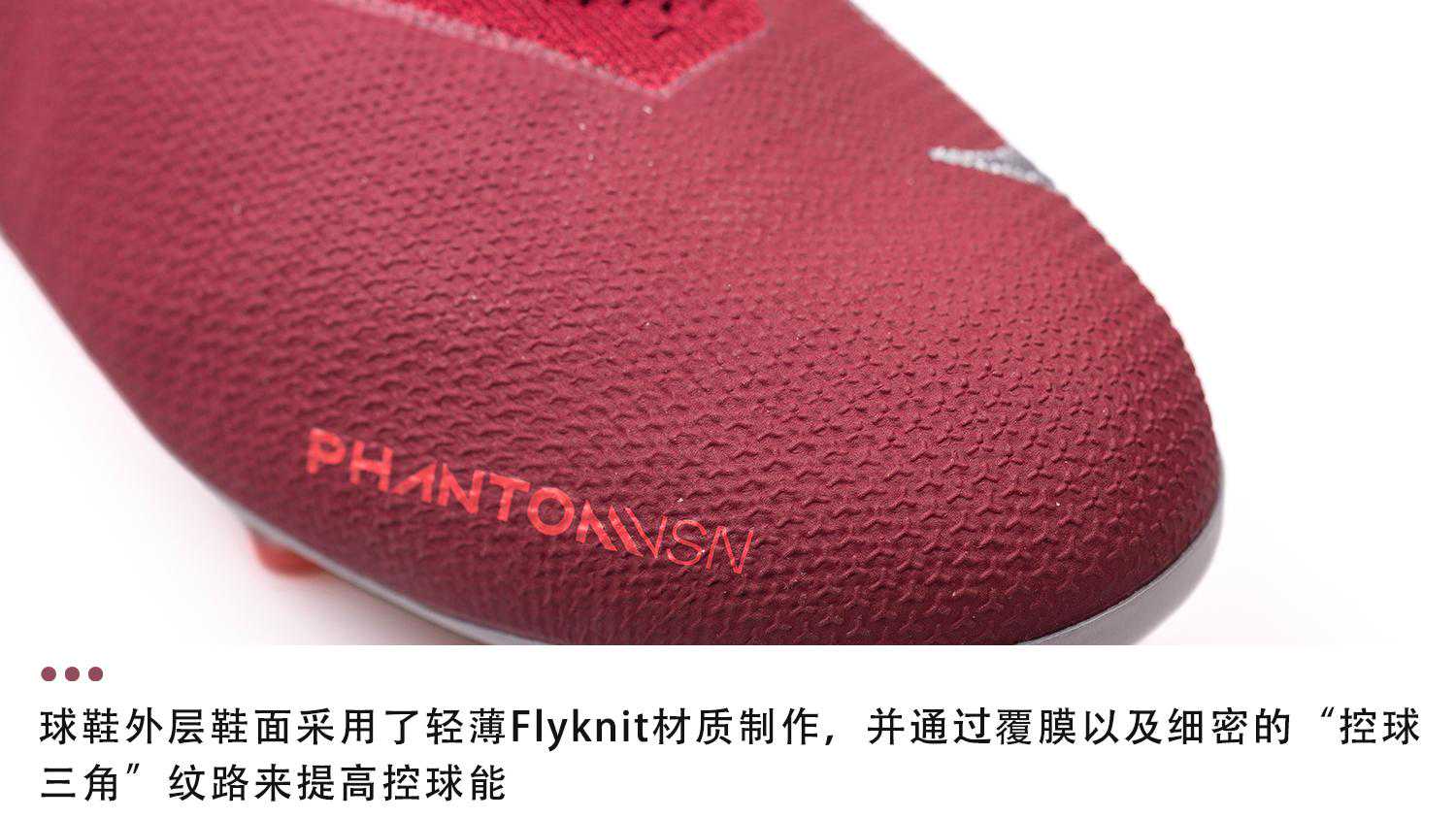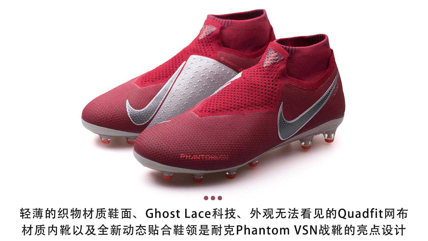 虽然外观无法算得上乘,但是全新NikePhantomVSN足球鞋的整个鞋面设计是非常出彩的。内靴设计虽然不是创新,但显然耐克不会简简单单就使用内外靴搭配的陈旧结构。Quadfit科技、GhostLace科技、超柔软的Flyknit飞织材质再加上密布触控三角的鞋面覆膜,无论是穿着感受还是实战触控,PhantomVSN给人的感觉都是焕然一新的,把内外靴结构玩出新花样,也就只有耐克做的如此好。这也是为什么不少EZer嫌弃外观一般,但下手买起Phantom来却一点都不手软的原因。