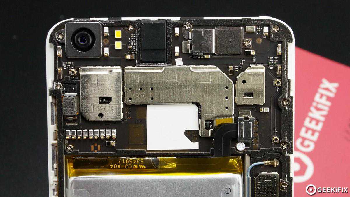中间大部分被电池所占据,边缘部分仅仅有双卡卡槽和主板一小部分。