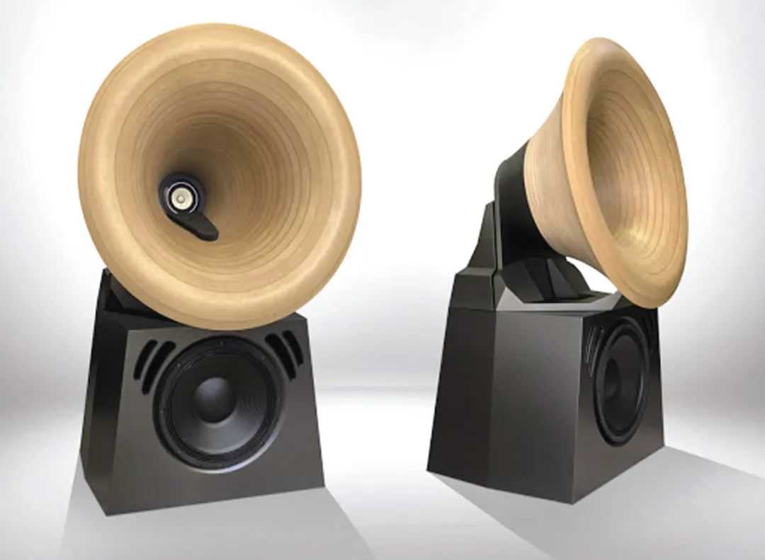 ●号角式音箱典型的高效率大动态音箱系统,能提高喇叭的还原效率,而且失真非常低,但产品的设计十分复杂,不管是圆锥状号角,还是指数型或双曲张号角,其变化的展开尺寸要求都比较精确,如有误差就会出现很大的峰谷,使频率响应变差。背负载号角箱体也要严格设计制作,如背腔体积的容量、滤波器设计不当就会使性能变差。