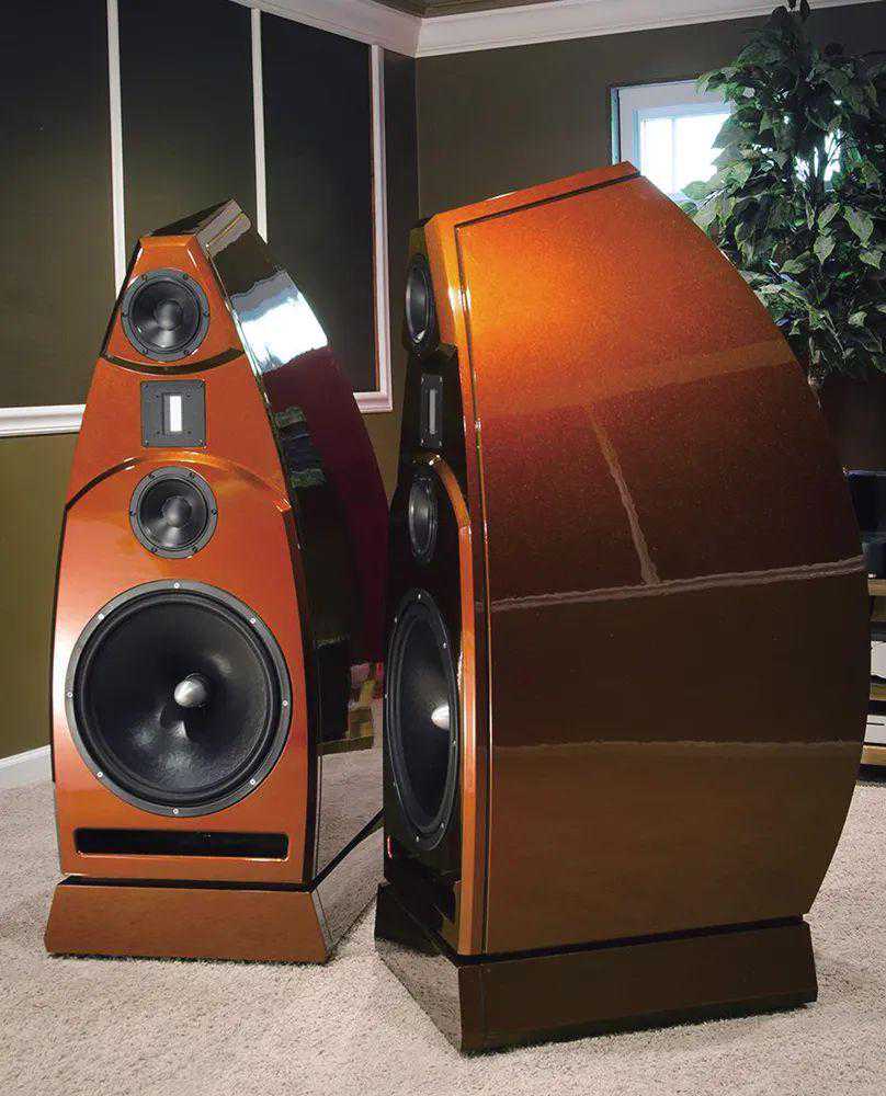 总的来说,音箱制作是一门非常复杂的系统工程,是介于机械工程学、声学、心理学、人机工程学之间的边缘科学技术,既是技术,也是艺术。完成的音箱可以用科学手段量测出技术指标,包括频率响应、信噪比、动态范围、失真度、瞬态响应、立体声分离度、立体声平衡度。但是艺术价值,就无法客观具体的衡量了,对发烧友来说,独特的音箱设计与鲜艳吸睛的颜色,绝对有加分的作用。虽然“扬声器设计手册”无法教导艺术,然而不同品牌的造型DNA,最后都会体现在实际的价格上。笔者找了些第一眼就能吸引眼球的音箱产品与大家分享,它们的设计充满奇思妙想,有部分已经被发烧友接受与喜爱,有些还在争取认同。音箱毕竟是需要发出声音,而发烧友更希望能发出好声音的产品,所以无法太过天马行空,在时尚的蓝牙音箱上有不少创意,但笔者觉得一部分是哗众取宠而已。总体而言,在Hi-Fi音响圈,比较有新意并且愿意大胆尝试的是意大利人与德国人,从下面的图片中大家可以试着找寻自己心仪的目标。全世界音响品牌众多,或有遗珠之憾敬请见谅。
