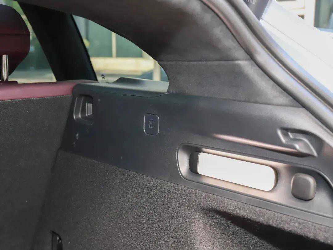 细节方面也充满心思,置物帘、隔物网、网兜、挂钩、LED补光灯等常见元素自然没有落下。其中,侧面网兜可以很方便降到底,扩大后备箱横向空间,放置大尺寸物品;挂钩创新地设计为自动伸缩式拉带挂钩,通过磁铁进行固定,可以方便地收纳开口购物袋。