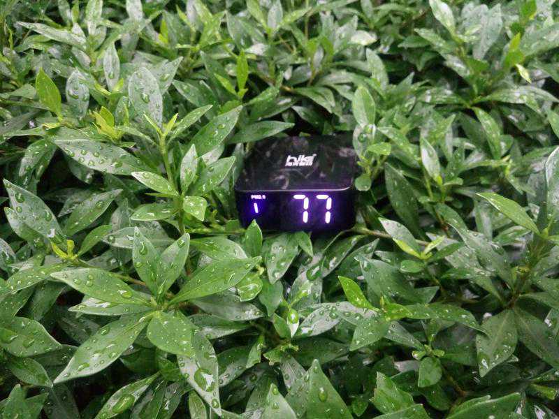 正面是个LED显示屏,开机后即可显示实时数据,左侧竖条是空气污染等级的指示灯,不同颜色显示代表等级,依次显示为绿、蓝、红三色,而右侧则是当前环境下,所检测的数值。电量不足时,有电池标志闪烁提醒,但没有时间、湿度等数值显示。