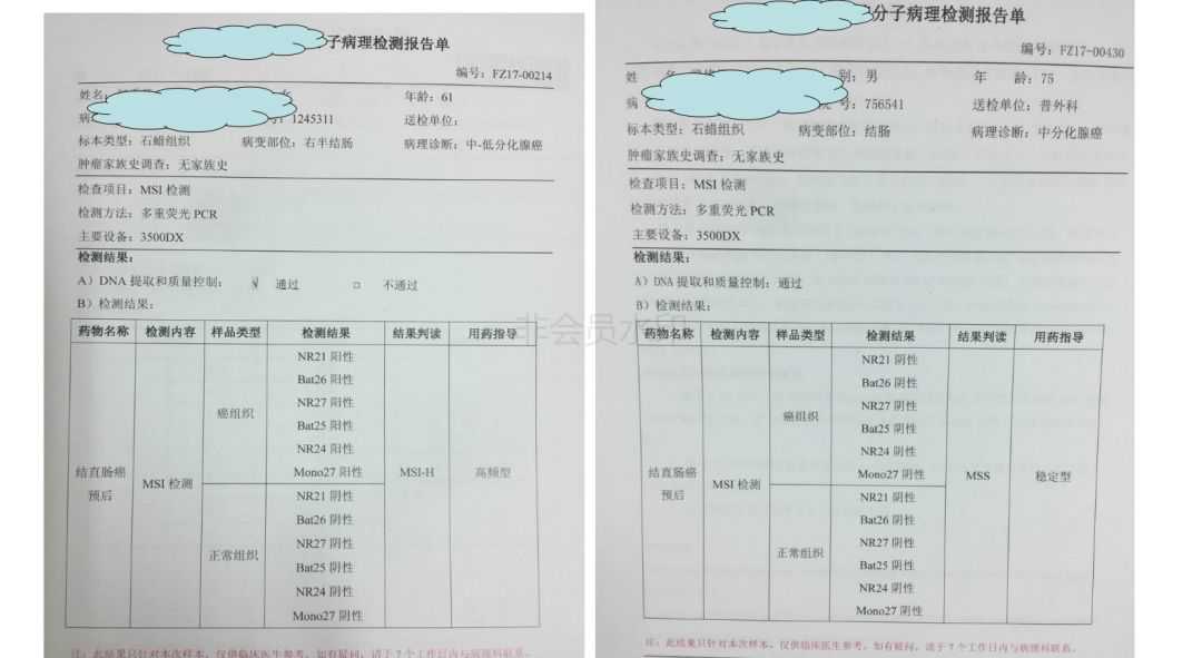 两者不同之处只是在于dMMR需要通过免疫组化来检测(蛋白水平),而MSI微卫星不稳定需要通过聚合酶链式反应(PCR)来检测(基因水平)。