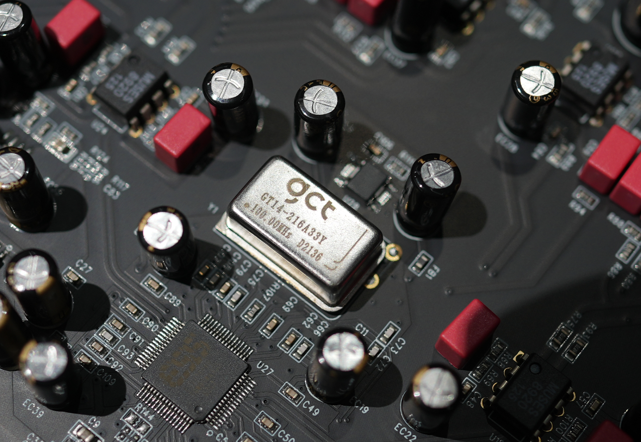 PD6X立体声输出部分采用ESS9038PRODAC音频解码芯片,RCA+XLR输出,支持DSD音频解码输出,LDO稳压电路,ELNAFORAUDIO音频系列滤波电容,搭载100M恒温时钟,分别以125dB和130dB的动态呈现音频细节与动态。