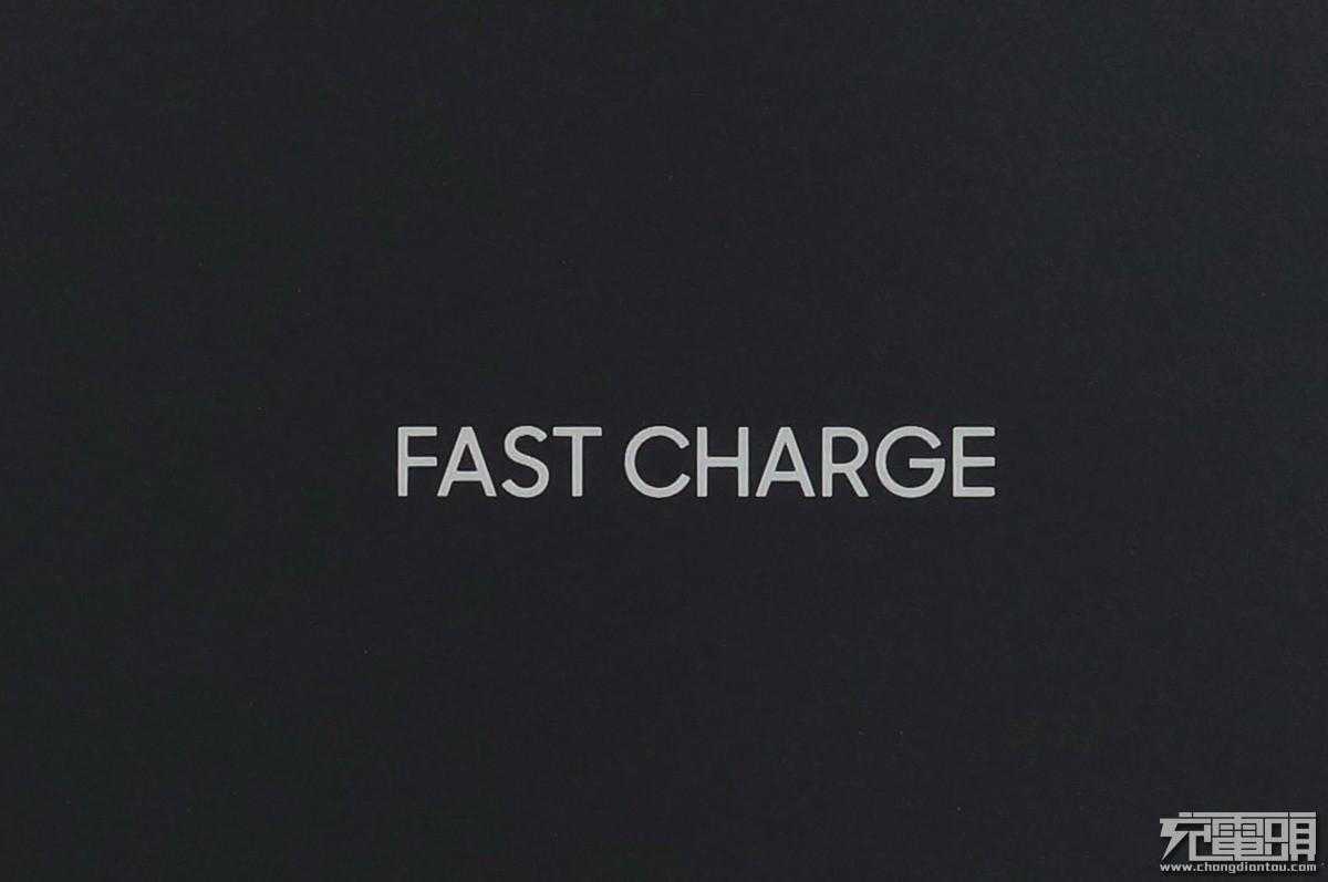面板上印刷的FASTCHARGE快充标志,这字体也是市面上原装货/山寨货的真假辨认方法之一,假货字体颜色跟这个是不一样的。