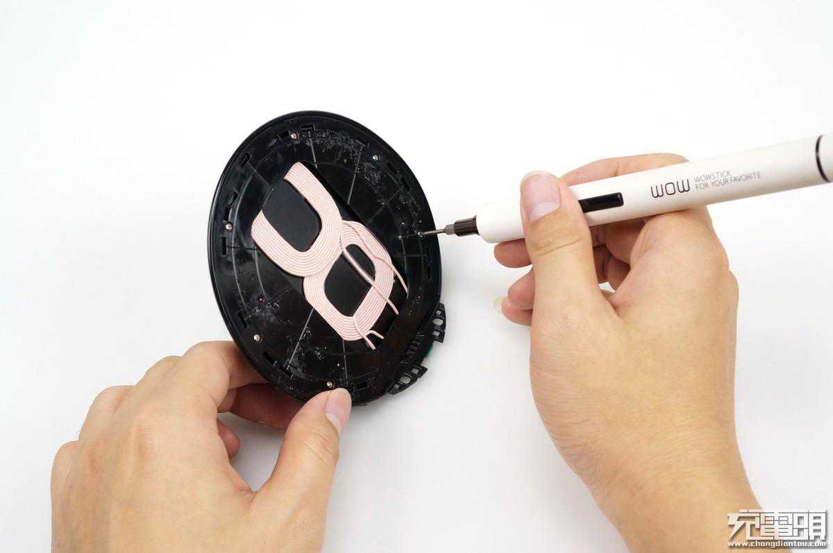 线圈粘在内构部件上,4颗十字螺丝拧掉。