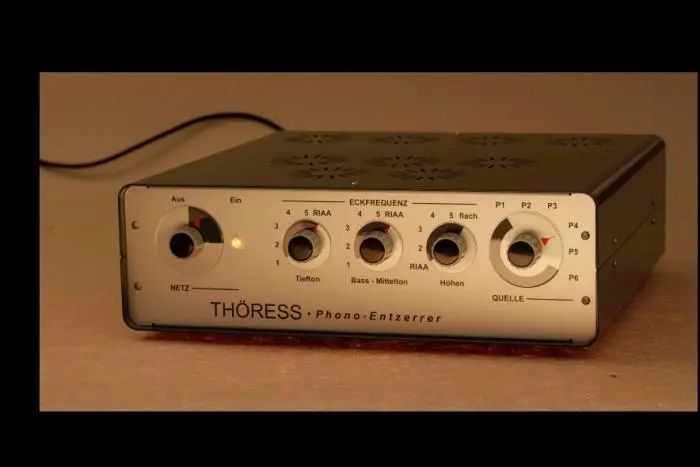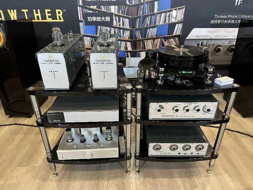 THÖRESS(特雷斯)由REINHARDTHÖRESS(莱因哈德ˑ特雷斯)先生于1998年在德国Aachen(亚琛市)创立,专注于Hi-顶级音响的理论探索发展、技术创新研究、工艺改良实践、产品设计制作。目前,THÖRESS已正式推出并向全球销售旗下共7个型号音响器材,它们分别是Preamplifier前级放大器、PhonoEnhancer增强型均衡参数式唱头放大器(最新推出)、F2A11IntegratedAmp三极电子管单端放大合并式立体声放大器、300BPowerAmplifier三极电子管单端放大后级放大器、845PowerAmplifier旗舰级三极电子管单端放大后级放大器、双功能前级放大器(设有耳机放大功能)、EHT胆前石后合并式放大器、EHT单声道后级放大器、Loudspeaker-2落地式扬声器、1D66落地式扬声器。现场展示有双功能前级放大器(设有耳机放大功能),PhonoEnhancer增强型均衡参数式唱头放大器以及300B单声道功率放大器。