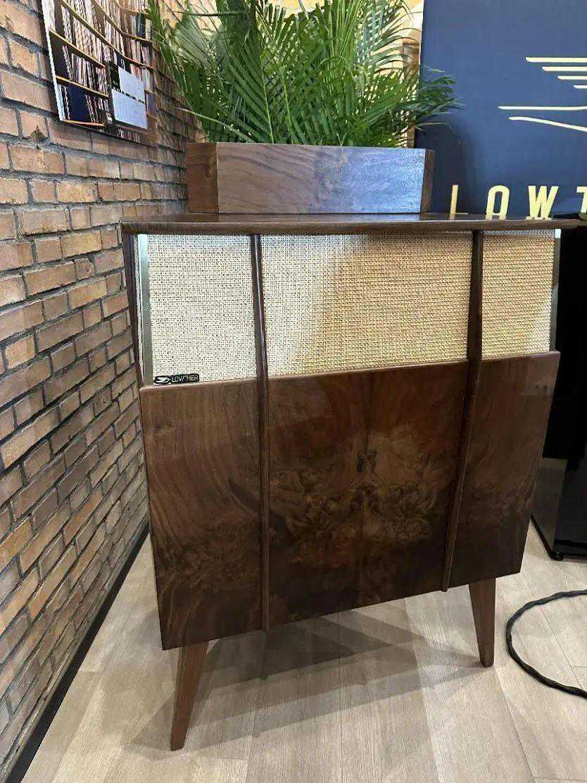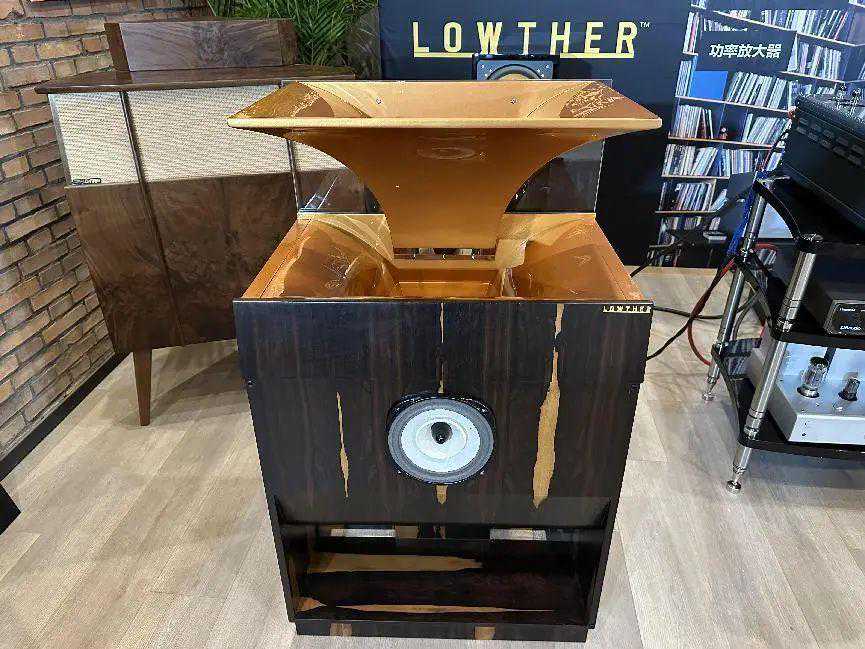 现场展示的LowtherTP-1A最初是由LowtherUK在1954年开发和生产的,这款原装的TP-1A使用LowtherPM3A全频单元,它是扬声器历史上最灵敏,性能最高的全频喇叭之一。