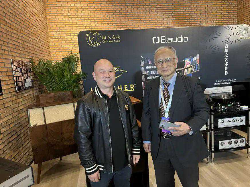 远道而来的台湾《音响论坛》总编刘汉盛先生亦对猫爪音响引进的高端精品兴致盎然。