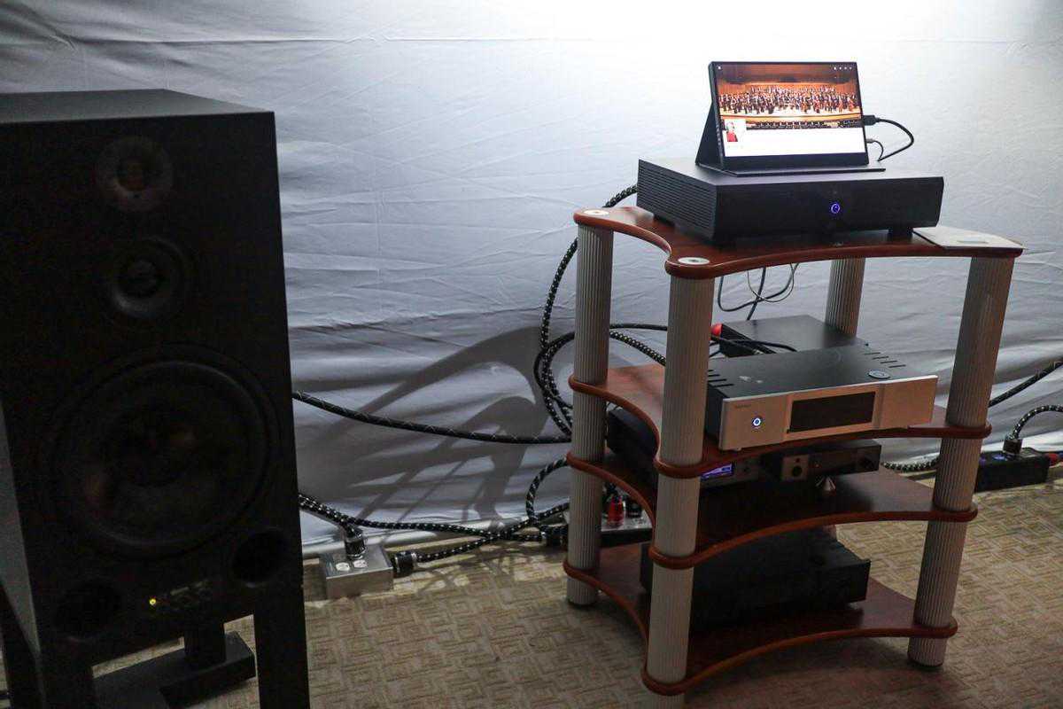 壹视听的另一个展房主要是来自矩声的台式产品和真力音箱。矩声这次带来了他们全新的旗舰流媒体音频解码X-Saber3,或许是目前市面上最漂亮的流媒体解码器?反正每次看到矩声的产品都会对其外形设计与本体质感大为惊叹。X-Saber3支持RoonReady、Spotity、TIDAL、dlna、Airplay等多种流媒体播放方式,而且能解MQA,现场还看到这个展房在系统中搭配了SilentAngel的F1线电和M1数播来处理音源(因为X-Saber3相比前代也增加了网络播放功能)。