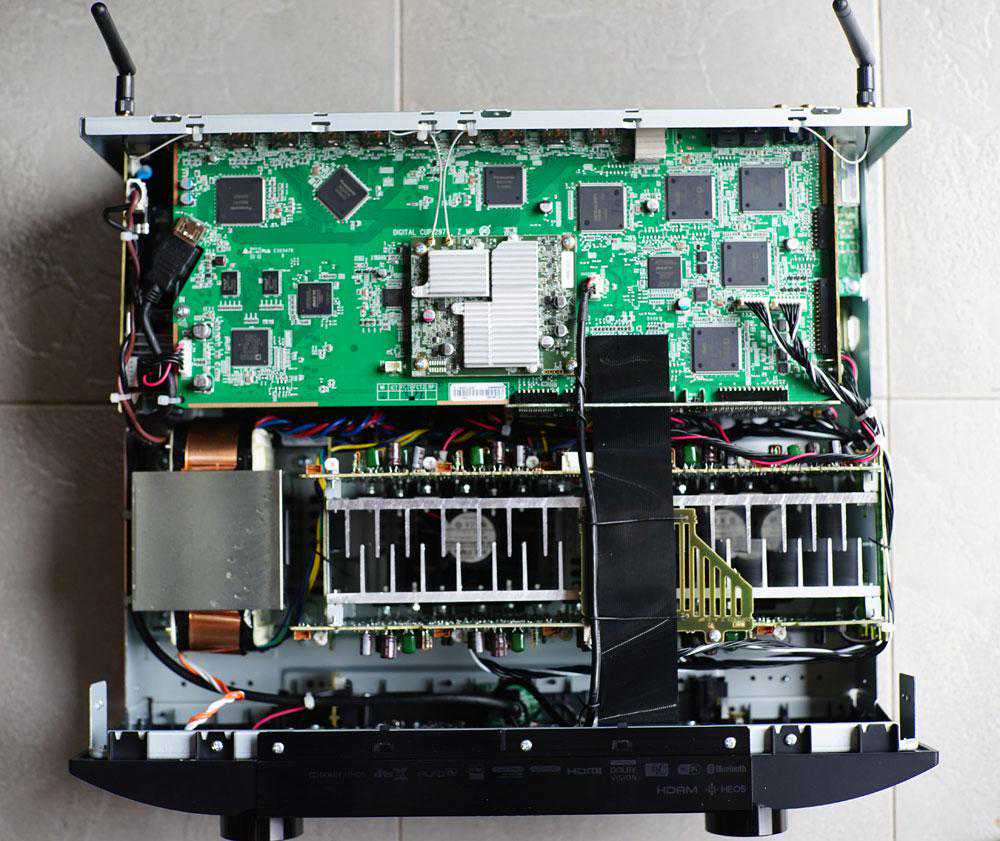 上图那一下块银色铝制散热片,所覆盖的PCB板,管理着这台功放的网络播放功能。
