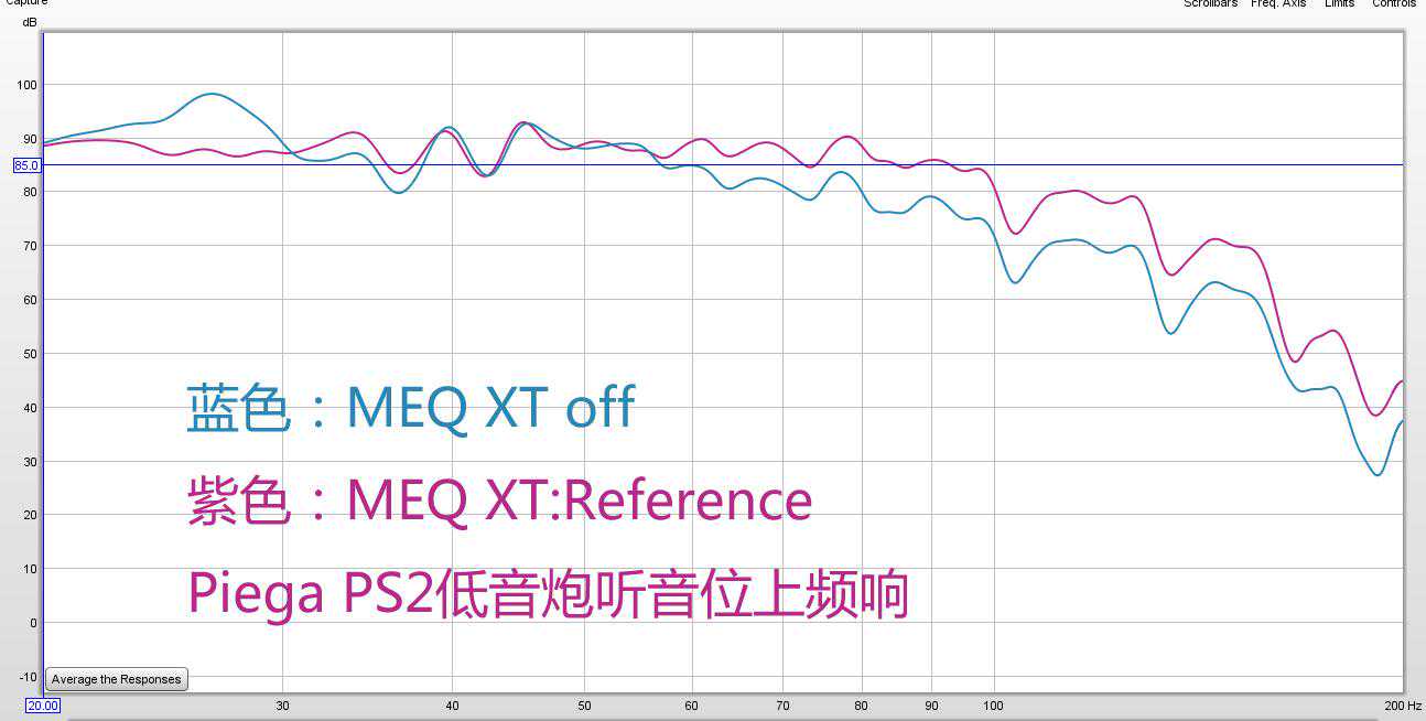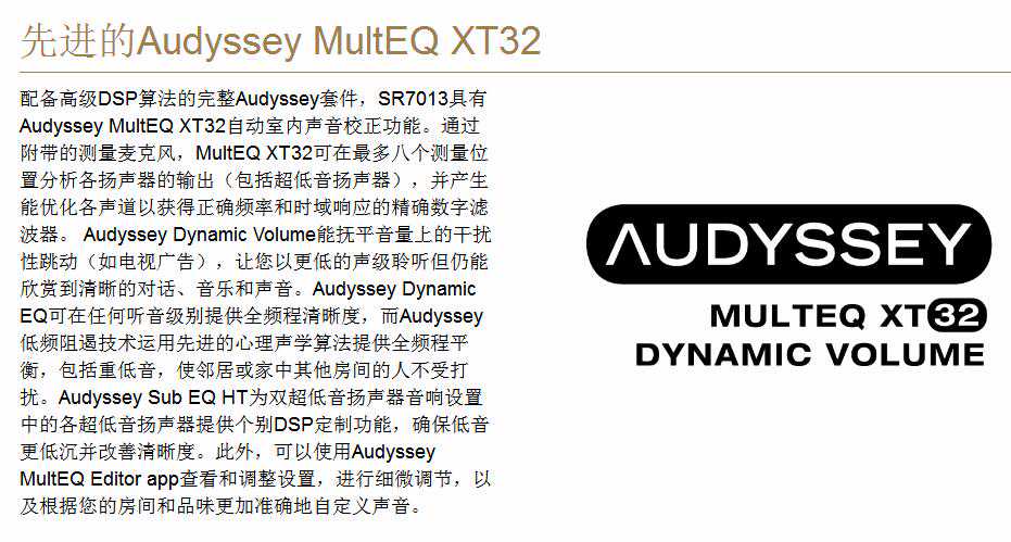 而注意看SR7013内置的这个最新版本的AudysseyMultEQXT32,他做的只是压低了30Hz以下的驻波。因为MultEQXT32降低了30HZ以下能量,60Hz到100Hz这一段自己便起来了。