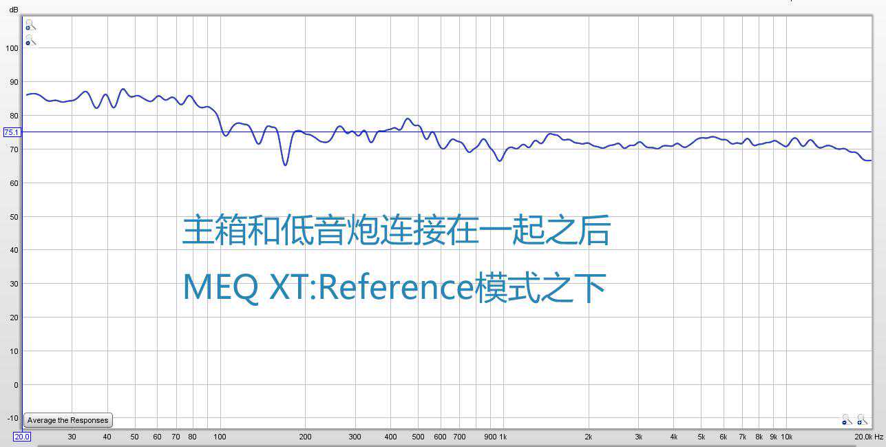 而最终,AudysseyMultEQXT32自动设置完SR7013之后,低音炮和主箱的融合情况是这样的。