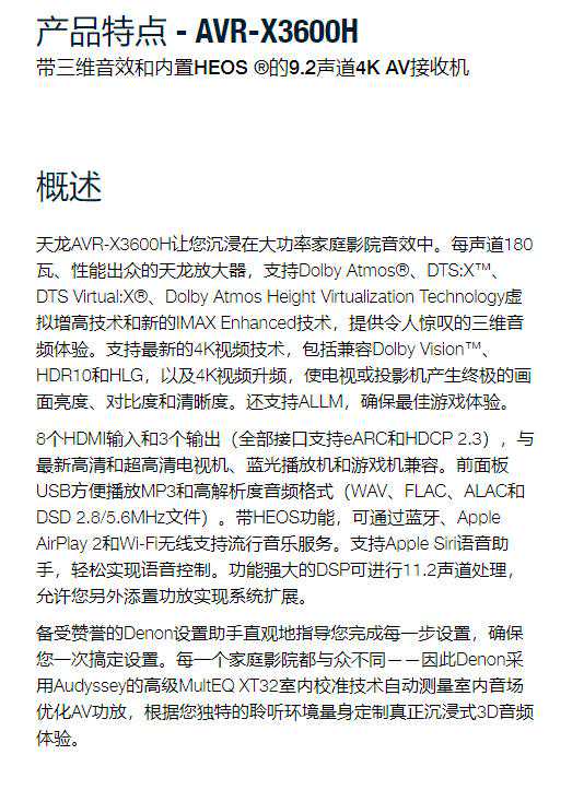 好了,看看AVR-X3600H的官方介绍。