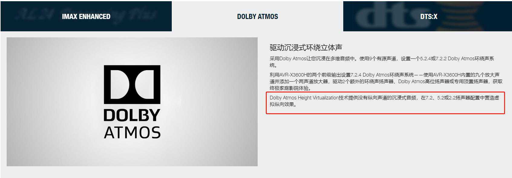 这一代的功放的DTSVirtual:X和DolbySurrund相对于几年前的,加强了高度声场的混音算法。
