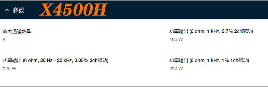 天龙AVR-X4500H在同样的条件下,功率标注为125W。4000元左右的差价,20W的功率差别。