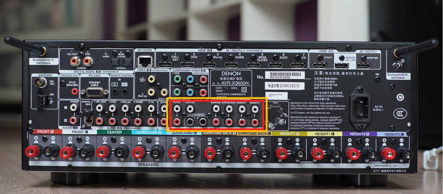上面我画框的部分,就是天龙AVR-X3600H的11.2声道前级输出