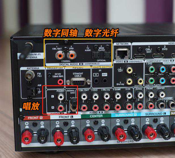 虽然是一台全景声家庭影院功放,但老一些的数字同轴,数字光纤,甚至黑胶唱放,天龙AVR-X3600H都统统装备。