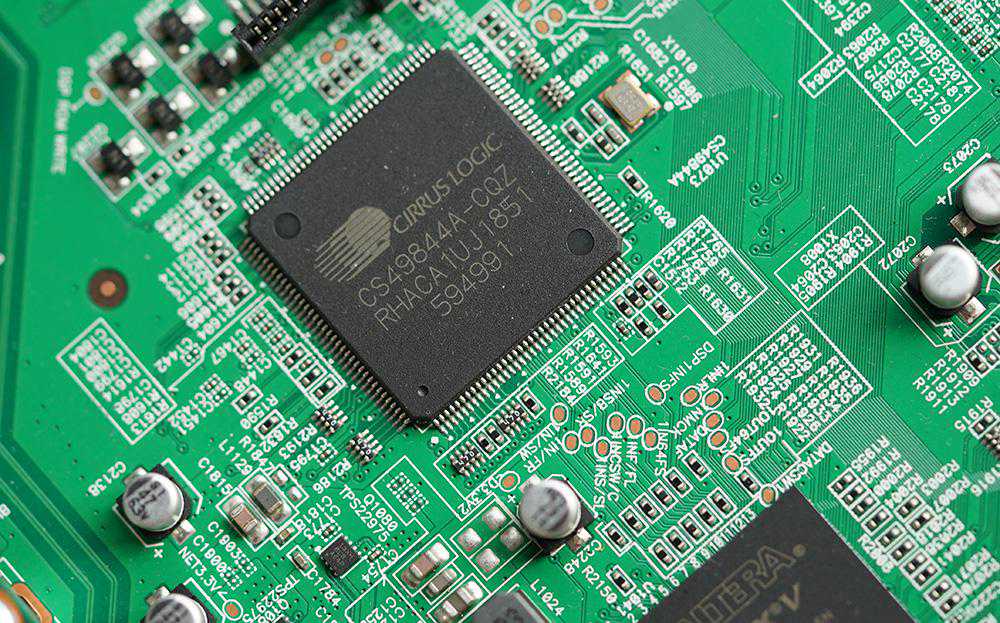天龙AVR-X3600H和AVR-X4500H在整体布局上基本上一样,但大家注意HDMI解码板上的芯片数量明显不同。