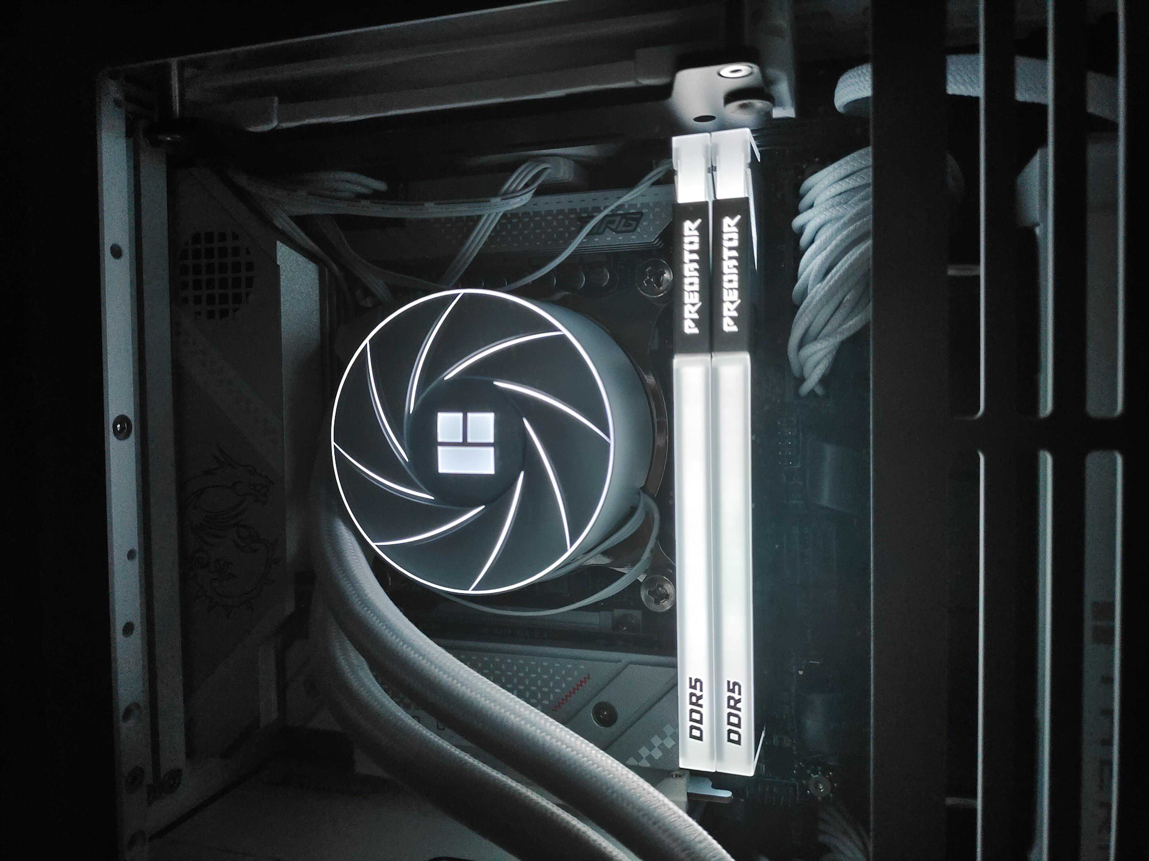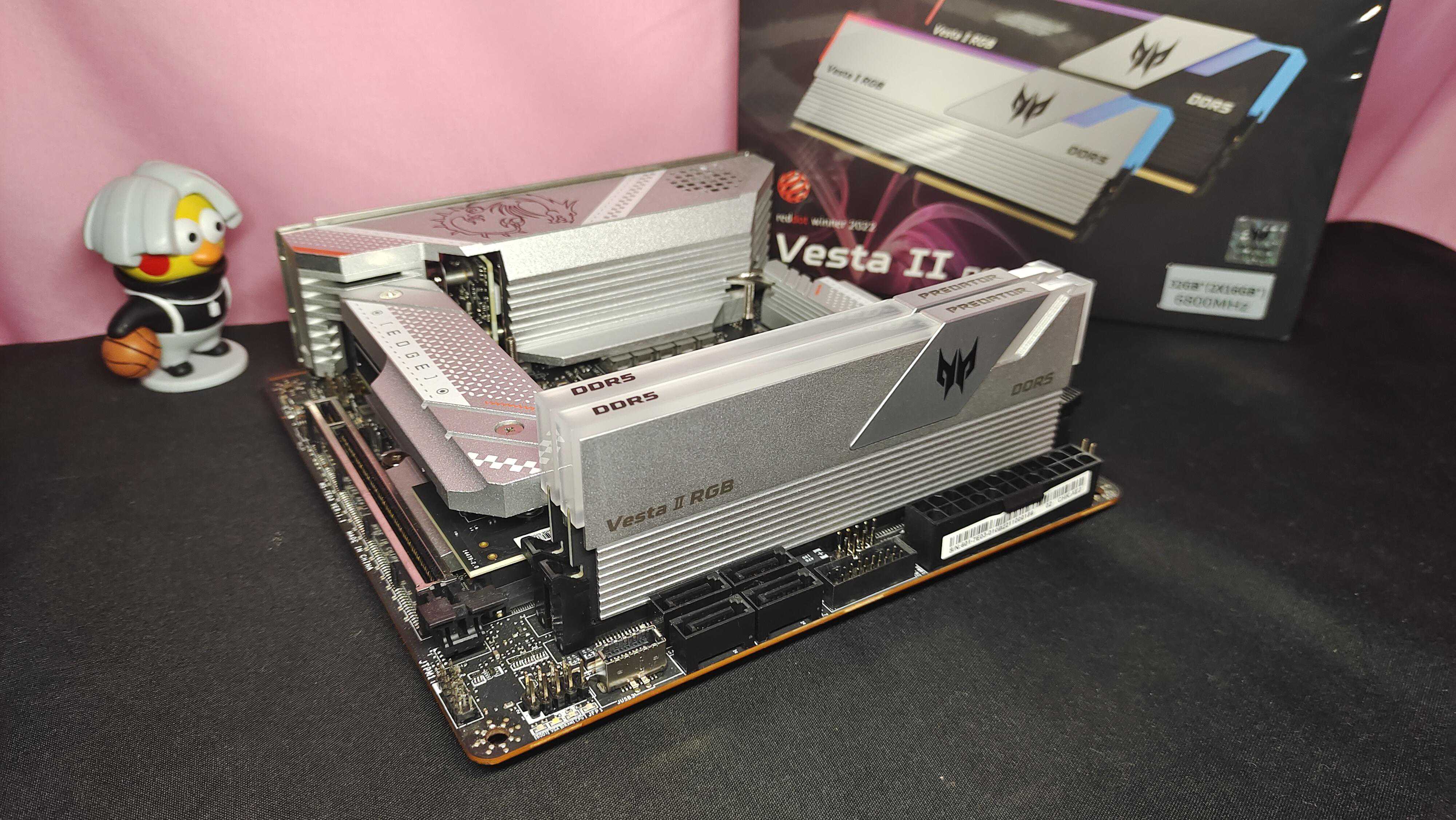 现阶段DDR5超频已相对成熟,高带宽的DDR5能弥补时序延迟上的不足,最近想升级的小伙伴可以考虑下宏碁掠夺者的VestaⅡ炫光星舰系列DDR5RGB套条,宏碁是为数不多有能力筛选颗粒IC体质的厂家,能更好地保障每个颗粒体质达到特挑平均水平,超频1GHz轻轻松松,OCPMIC无电压锁对超频新手更友好,倘若你能抢到ROG的Z790APEX主板,那么8400MHz甚至更高由您创造!RGB同步灯效更是高端主机的象征,提供氛围感一致的桌搭风格。