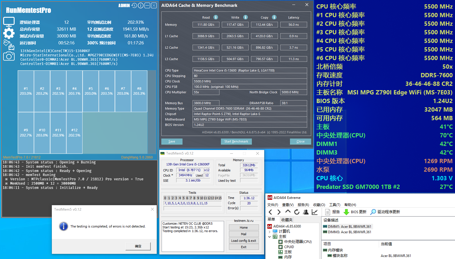 因为DDR5超频不但要求内存体质达标,还需CPU内存控制器(IMC)体质及主板线路设计稳定性,各种影响因素比较复杂,大家可以简单理解为主板内存插槽2和4体质不同,需要把体质好的内存放体质差的插槽上,达到木桶效应平衡,华硕和微星的Z系列主板超7200基本问题不大,大家购买主板建议首选这两家。