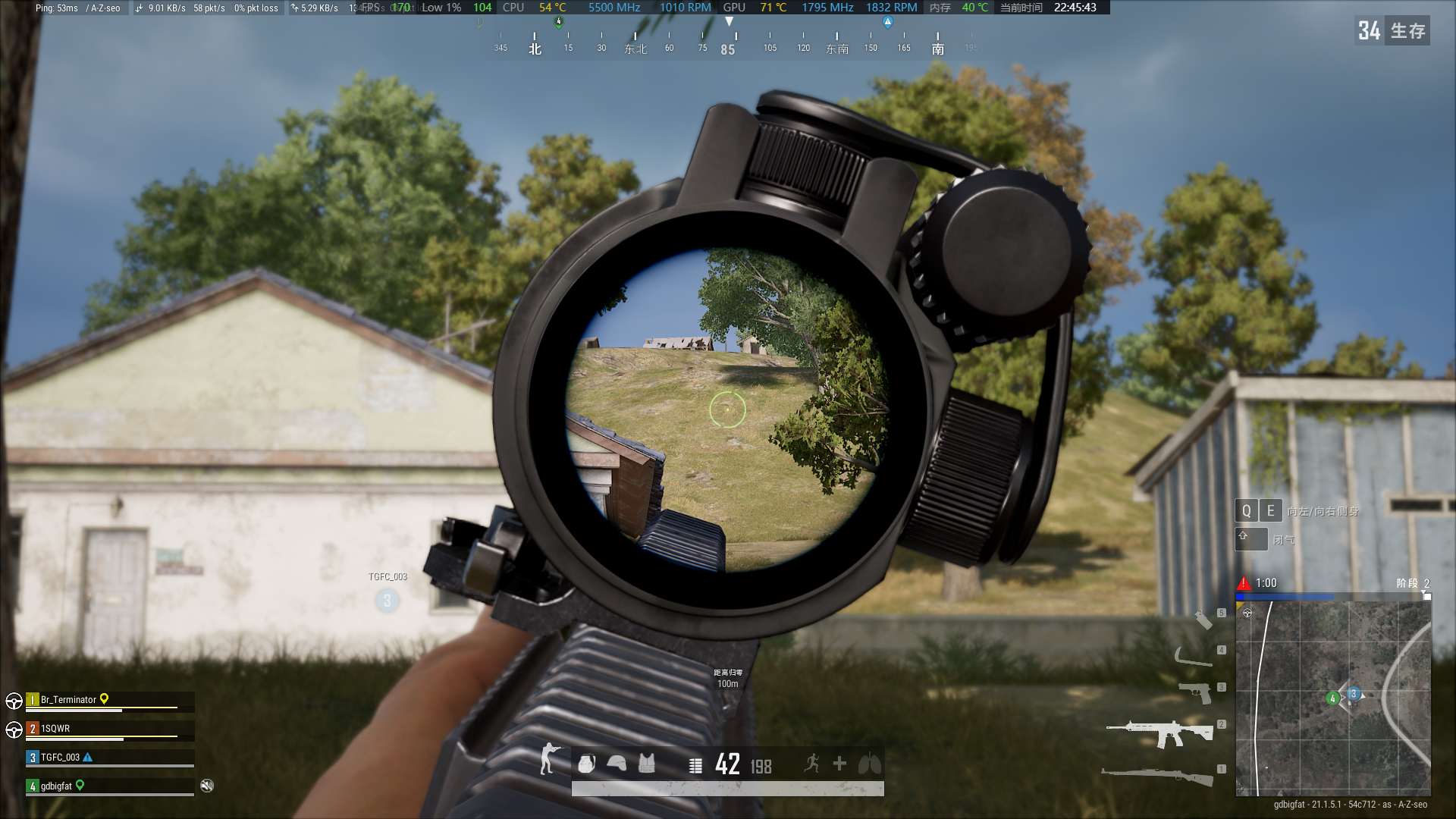 ▲吃鸡,画质为GeForceExperience的推荐画质,关闭垂直同步,平均帧率为157FPS。