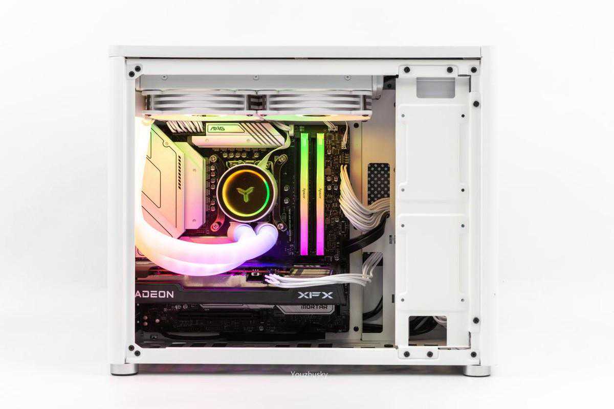 乔思伯白色D30外观颜色为正白,只有脚垫为银色,喷砂和漆面色泽非常统一,除了显卡外的水冷和主板、电源、内存也都是白色