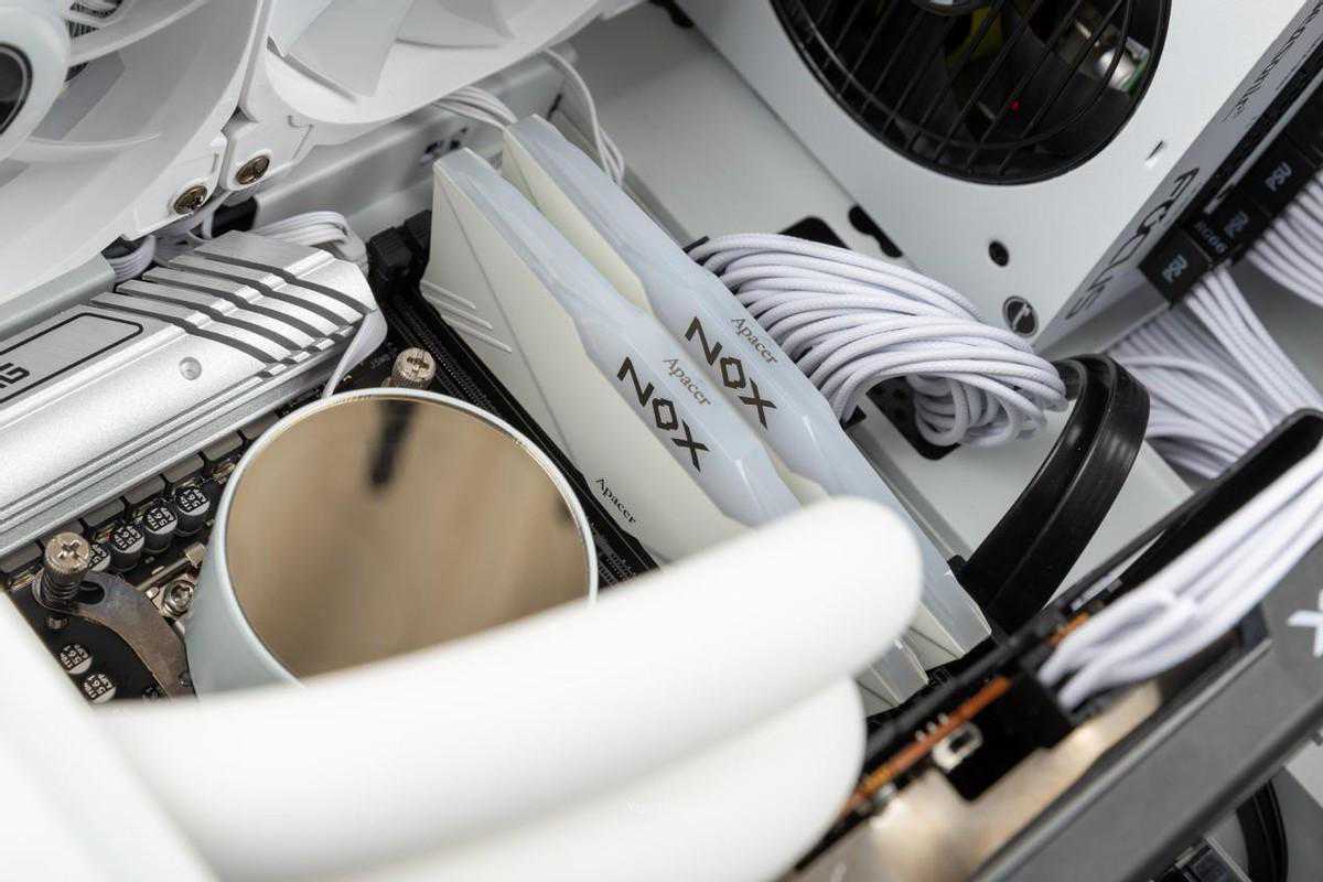 侧面看白色款宇瞻NOX暗黑女神内存和海韵FOCUSGX1000电源