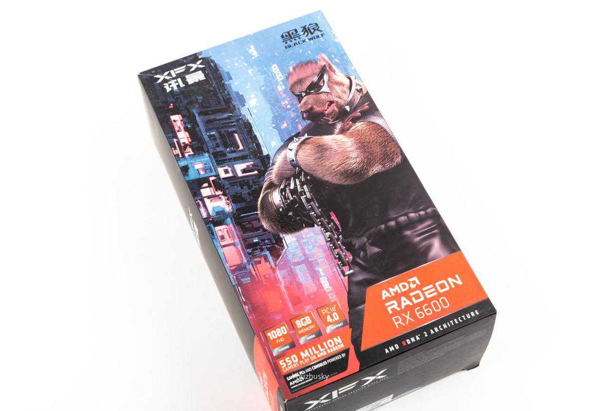 RX6600黑狼显卡本体,标准双槽设计,虽然只有241mm长度,但配置了两个10CM风扇