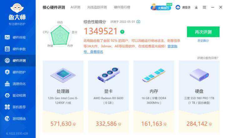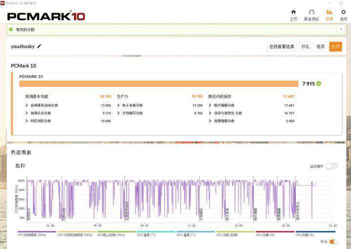 整机PCMARK10办公生产及数位内容创作综合得分7915