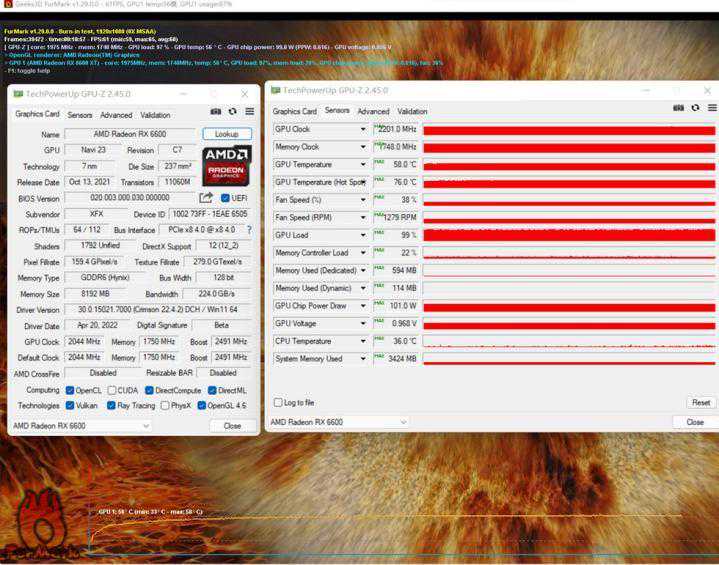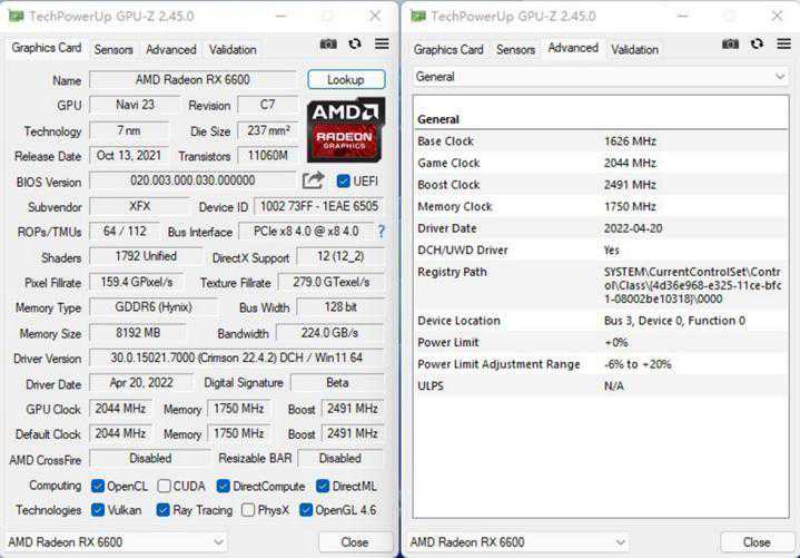 讯景RX6600黑狼显卡显示的GPUZ信息