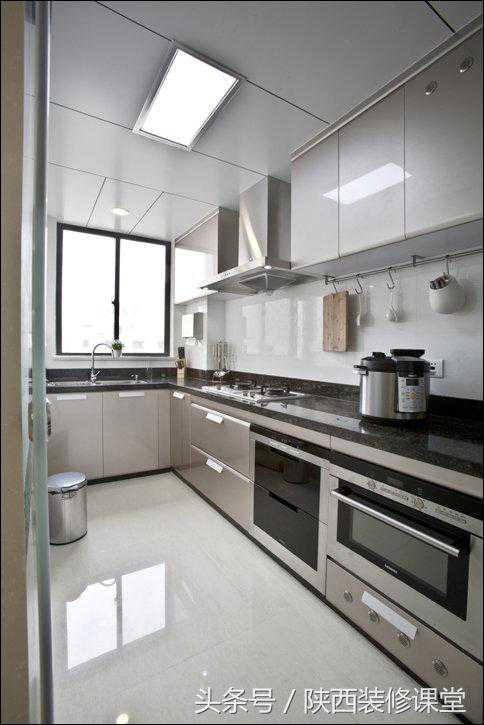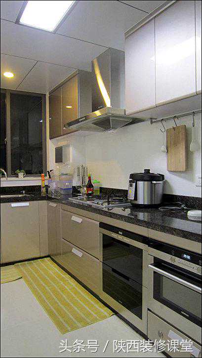 哦,忘记放上专业摄影师眼中的厨房了,补上。顺便让大家看看厨房天花完整的布局,主照明灯是平板LED,水槽上方还有一个暖光LED筒灯。