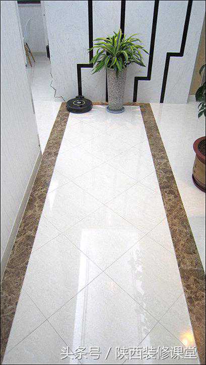 玄关地砖外面这一圈用的用【浅啡网大理石】,地砖是拿某鹏瓷砖的80*80的地砖切割成40*40的小砖,45度斜贴。
