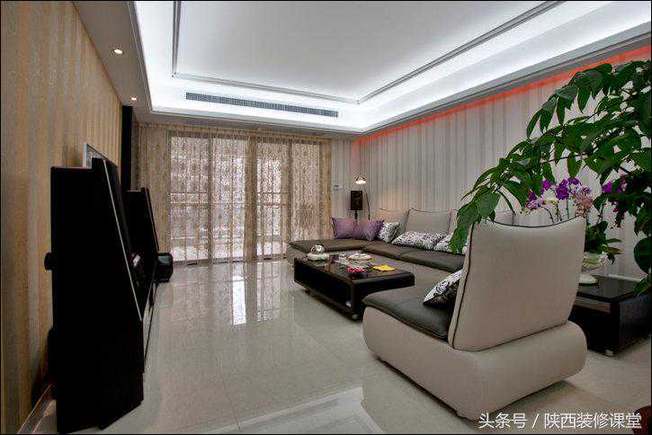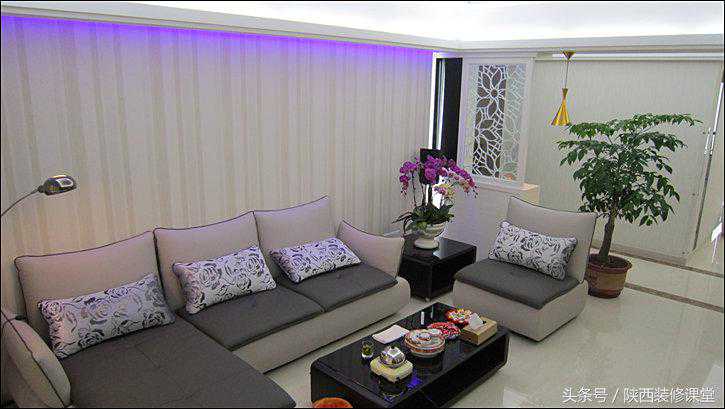 飘窗上的暖色藏光槽。