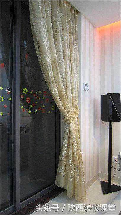 客厅阳台门的窗纱,因为我觉得客厅没必要搞得太复杂,又没有安装投影设备需要在白天遮光,所以只用一层纱,从简。